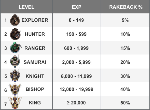 INSTANT RAKEBACK LEVELS
